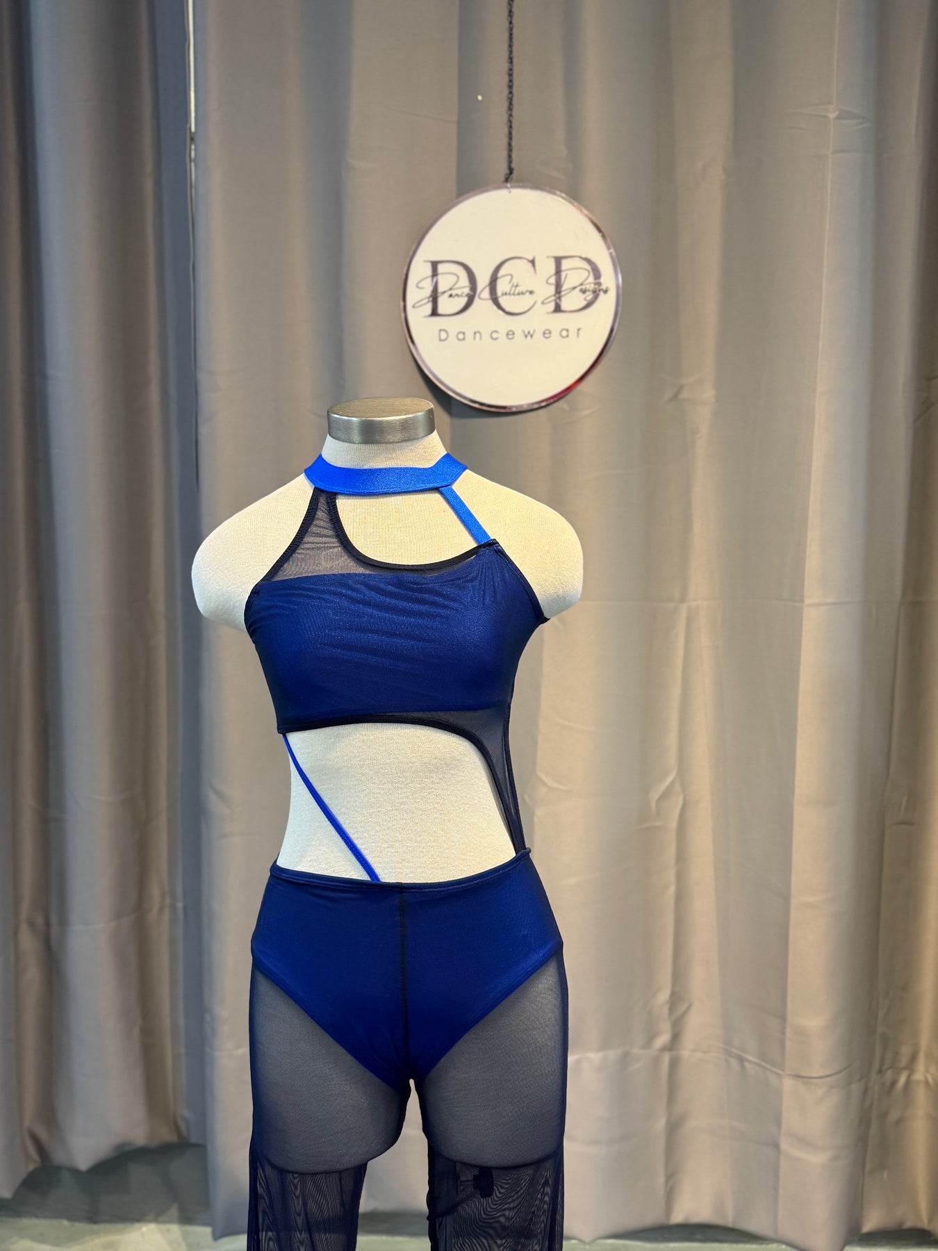 • Midnight unitard in dark navy and royal blue lycra