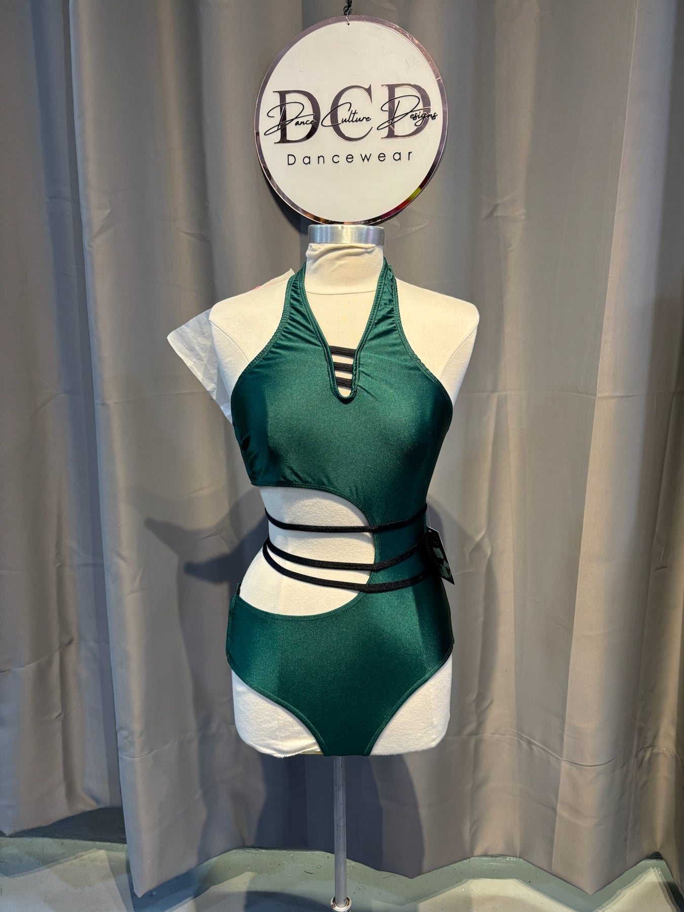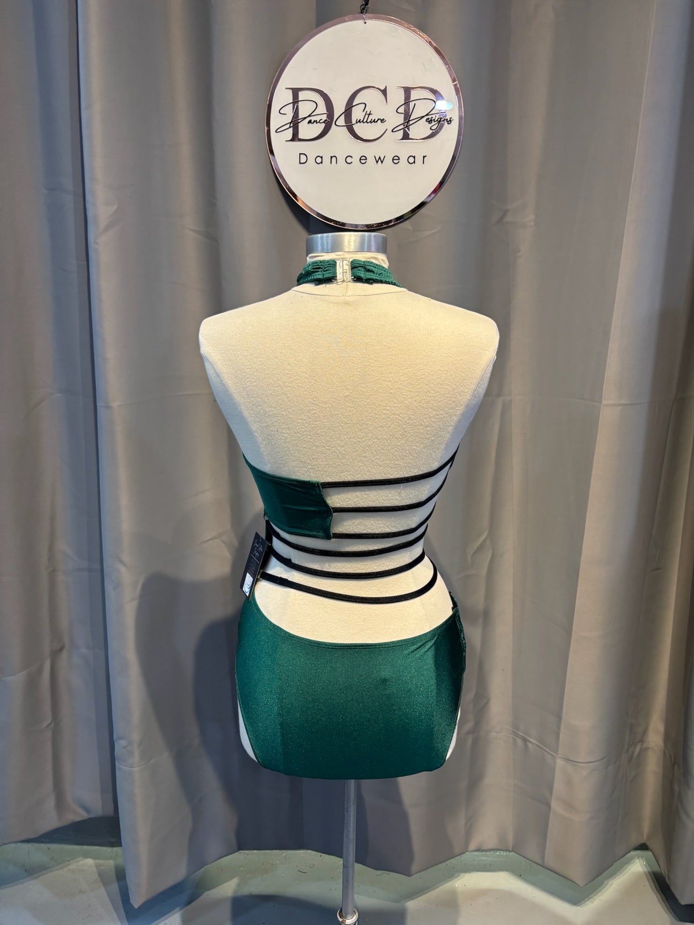 • Tiras Leotard in hunter green and black accents